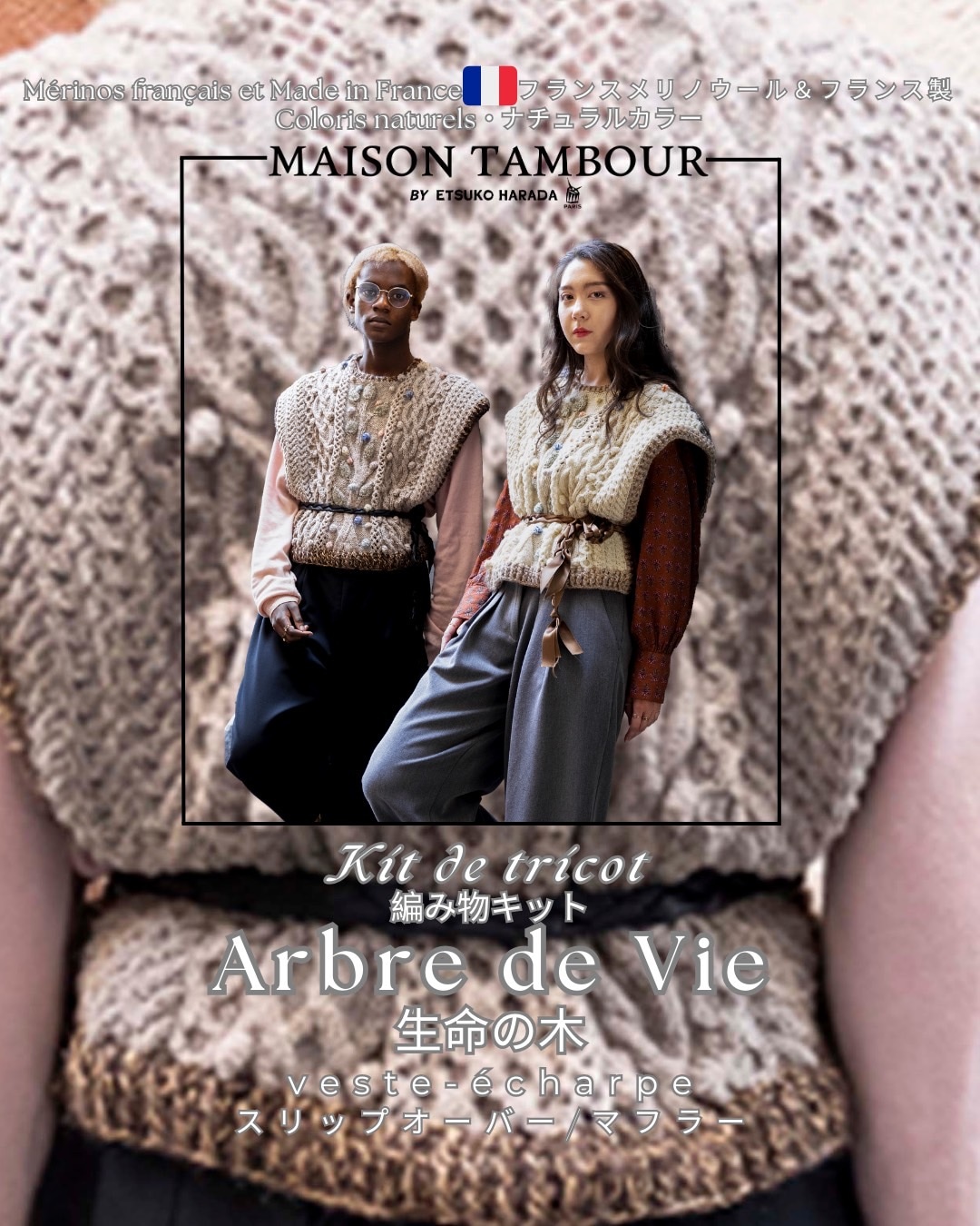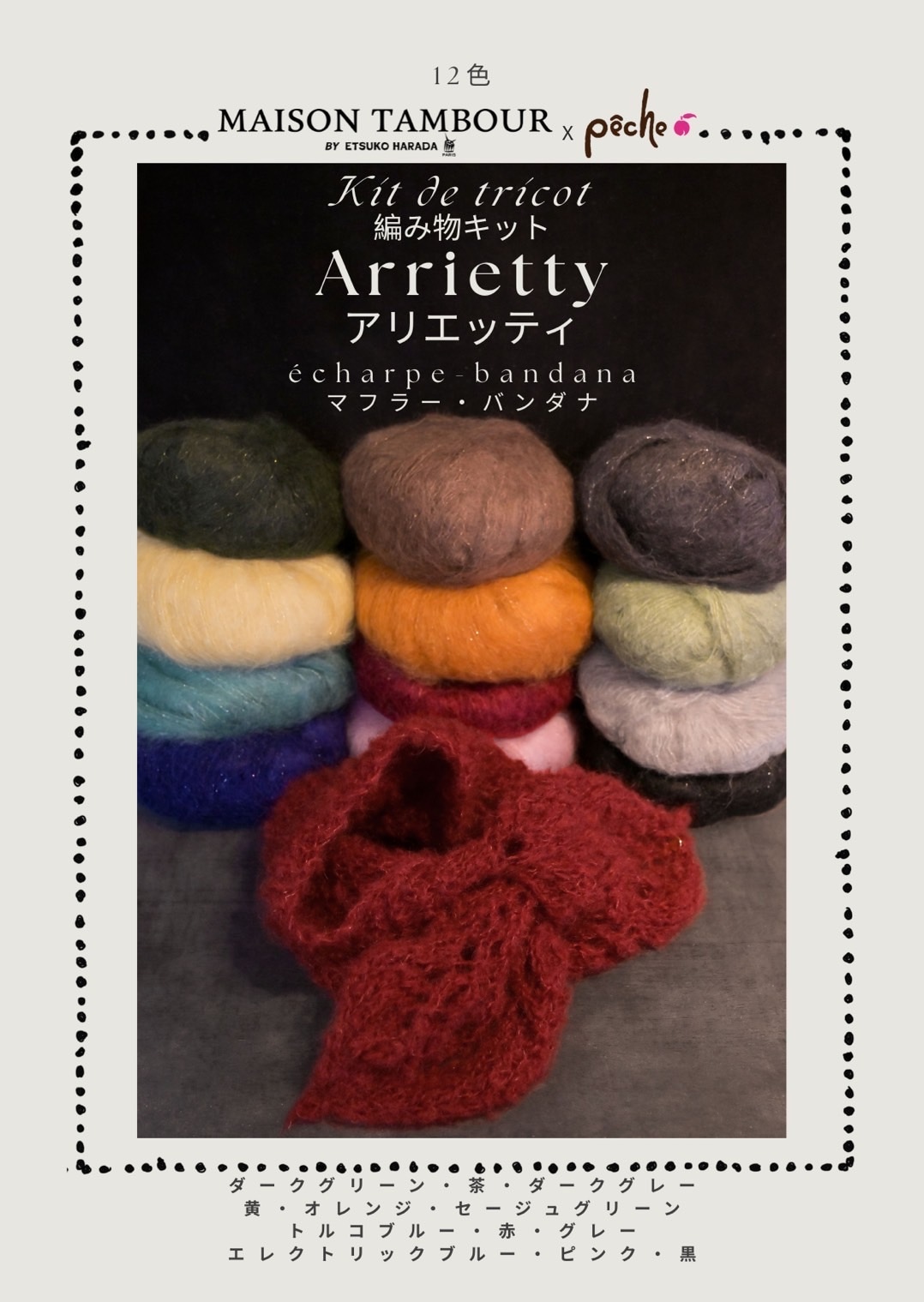 棒針、かぎ針編みを組み合わせたタンブール独特の編み方ベストセラー商品を、皆様にご提供させて頂きたく、こちらのキットをご用意いたしました。